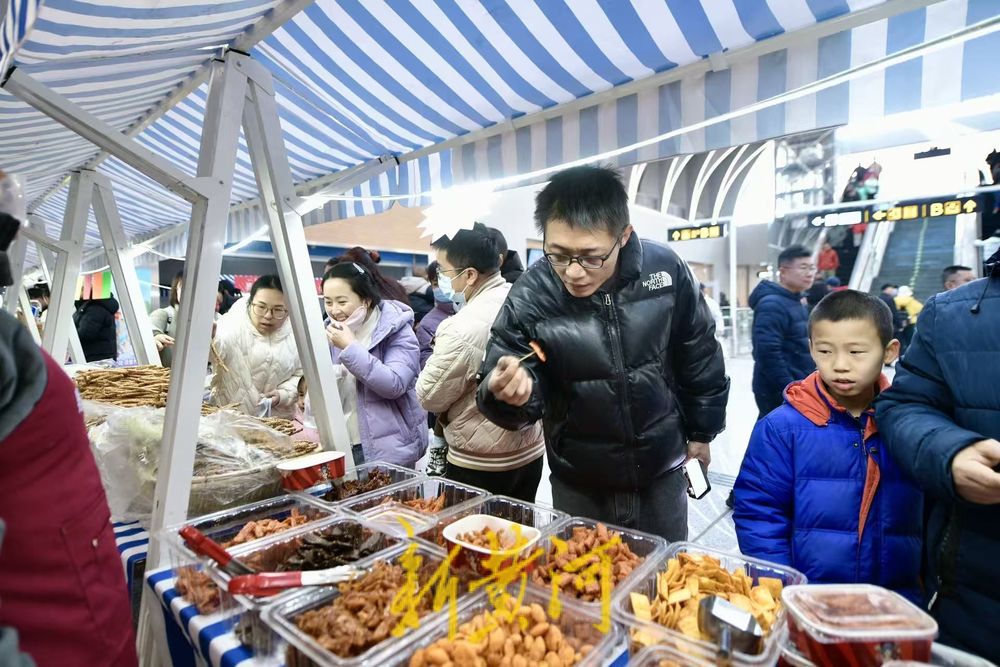 为丰富乘客出行体验,济南地铁在客流量较大的4号线泉城公园站创新推出“泉韵市集”,近30个特色摊位汇聚各类泉城美食,让市民在感受地铁便捷的同时,也能一站式品尝地道的济南风味。