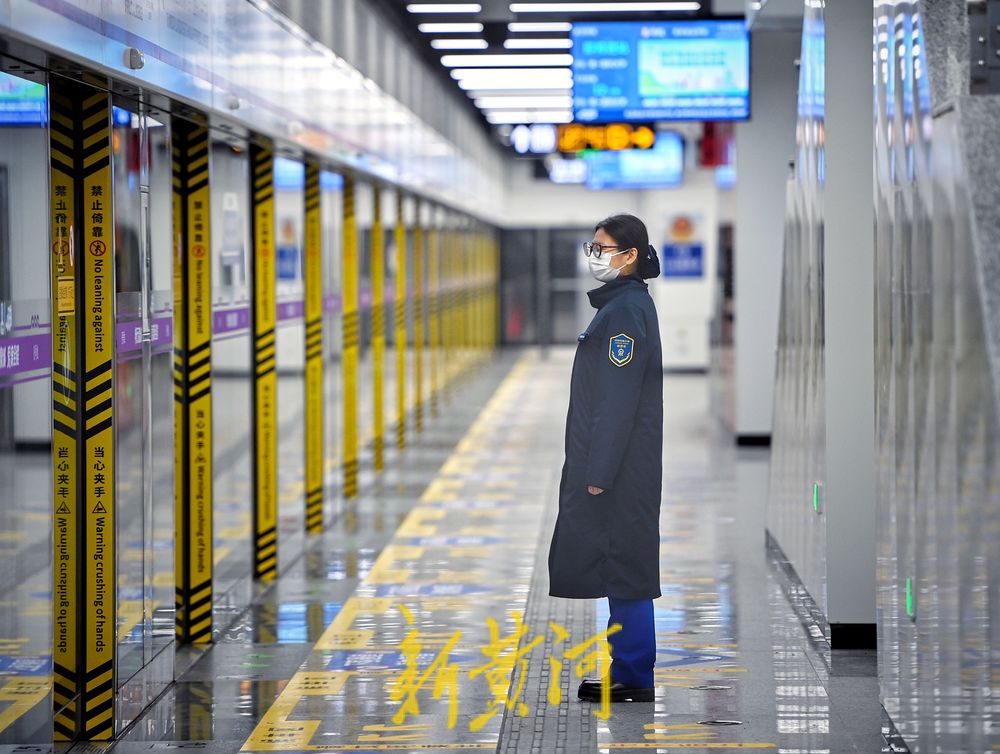 27日早上7时许,在济南地铁8号线青年政治学院站,工作人员已做好运营准备。