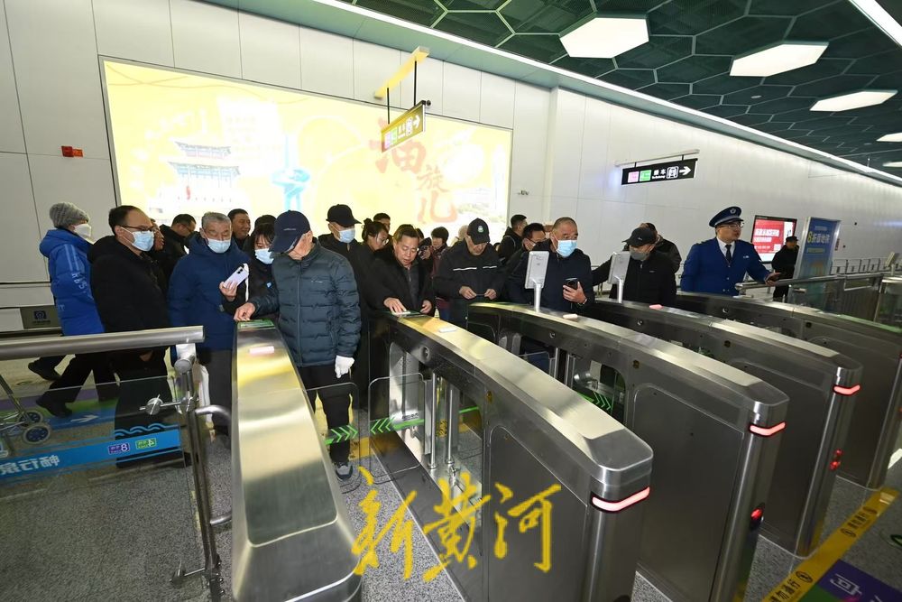 济南地铁6号线东段梁王站,市民前来打卡体验。