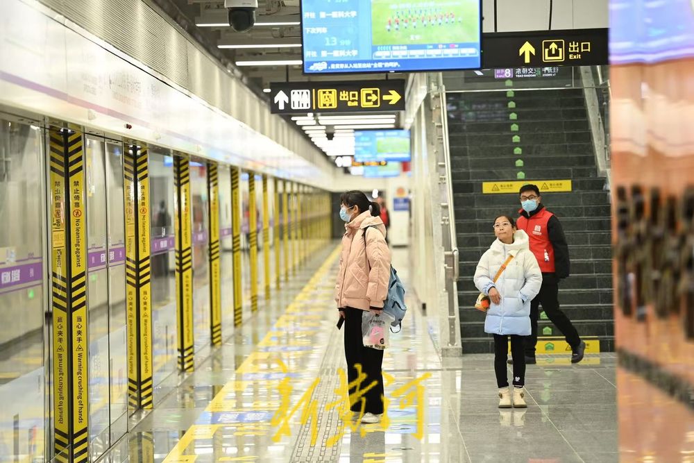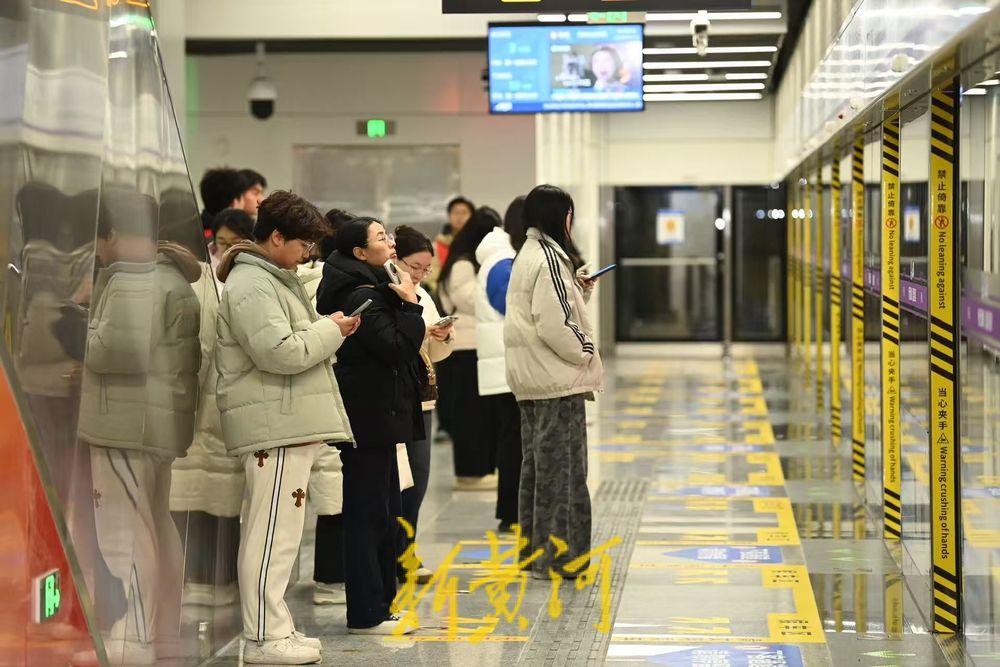 在地铁2号线与6号线东段的换乘车站——凤凰北路站,市民陆续赶来,准备打卡体验。