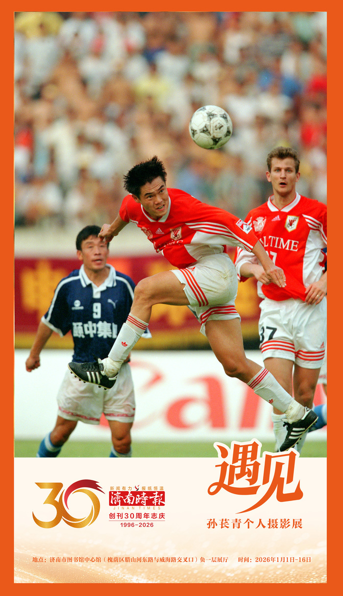 自2004年以来,孙苌青已举办四次个人摄影展,每一次都成为济南球迷与城市记忆的一次聚合。而此次“遇见”,是他第五次个人影展,也是时间跨度最长、内容最完整的一次呈现。展览系统梳理了《济南时报》创刊30年来的重要影像记忆,既有山东足球的荣耀与传承,也有中国足球的时代切片,更折射出一份报与一座城共同生长的真实轨迹。