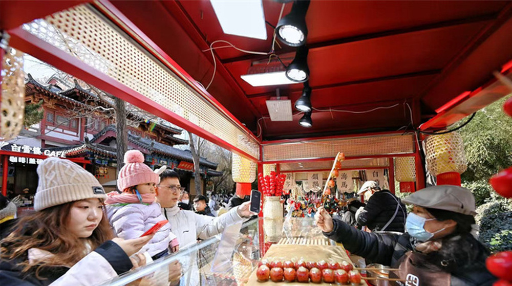 新年伊始,趵突泉畔的泉水糖葫芦受游客追捧