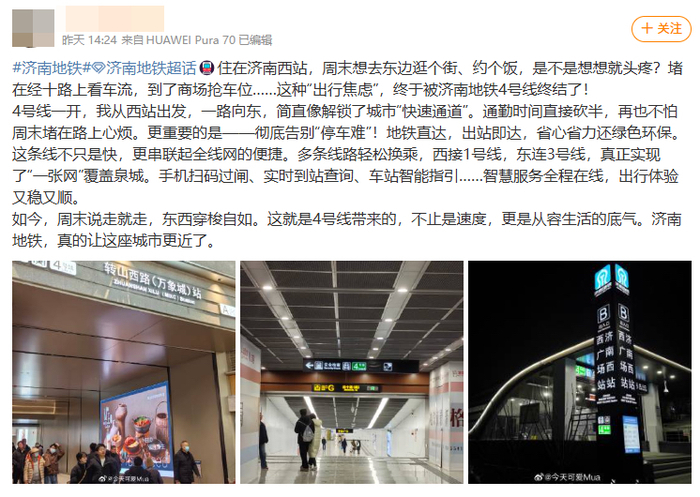 轨道的尽头,是家的方向,也是城市的未来。济南地铁表示:“感谢每一位乘客,是您的每一次选择,赋予轨道以意义;是您的每一条建议,鞭策我们不断前行。”