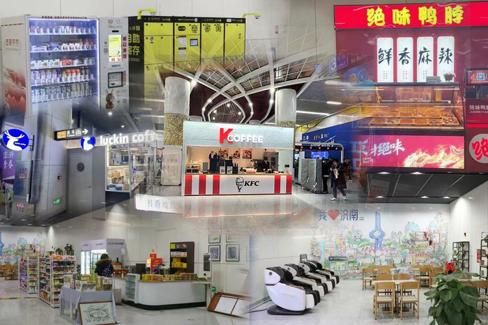 2025年,济南地铁结合既有线路及多条新线车站区位特点及周边环境,通过“一站一策”的个性化运营,新增站内自助服务点位500余处,开发商业空间60余处,成功引入多家知名品牌,满足乘客出行、购物、餐饮、寄件等多样需求。