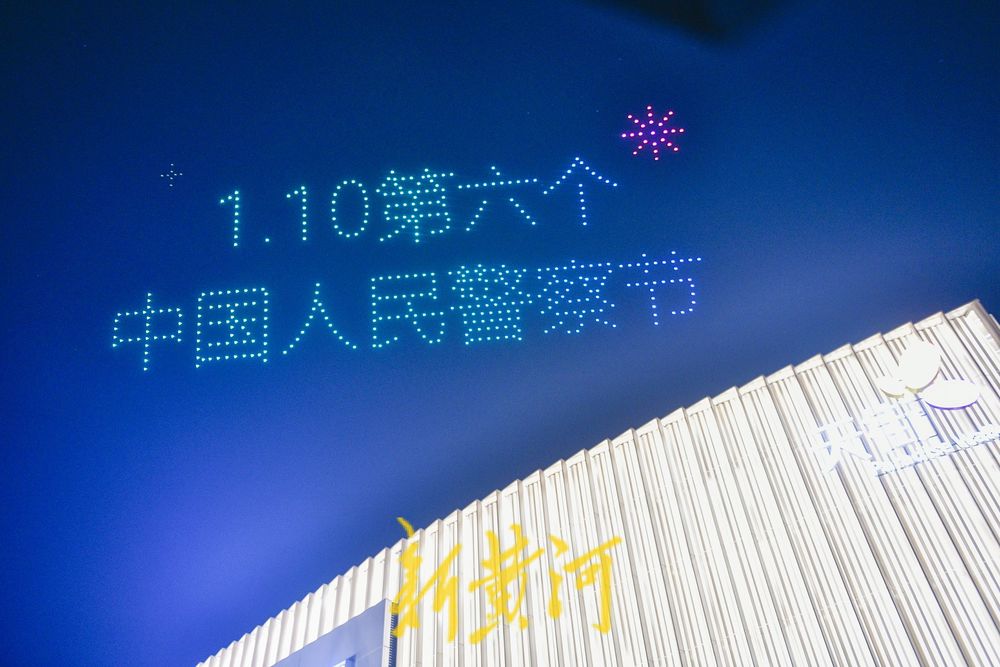 为向人民警察致以崇高敬意,山东低空融媒与济南市公安局联合举办了这场无人机光影表演。数百架无人机在夜空中整齐编队,通过精密的灯光变换,演绎了一场充满科技感与艺术感的视觉盛宴。