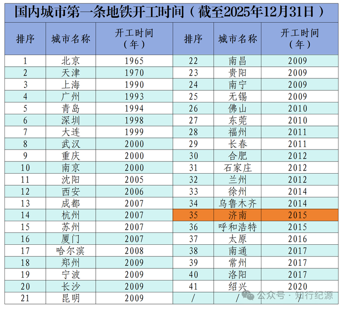 众所周知,济南受保泉影响,地铁建设起步晚,到底有多晚?经查阅,多数老牌地铁集团集中在2007—2012年开工建设,也就是说大部分城市整整比济南多了一轮建设周期,所以在第一条地铁开工中济南排名是基本上是垫底的。