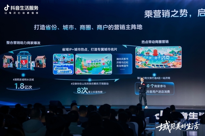 作为大会的重要配套举措,抖音生活服务与济南展开了深度合作,通过“一场抖音城市生态大会+一系列抖音短视频营销”的双轨引流模式,全面促进冬季文旅消费。