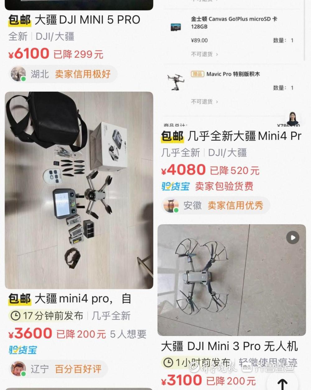 当日,记者在闲鱼、转转等二手平台看到,不少消费者出售大疆御系列、精灵系列等热门产品,不少产品带有“99新”“刚激活”等标签。根据相关行数据显示,2026年1月,二手平台无人机挂售量超60000台,相比去年同期上涨200%。