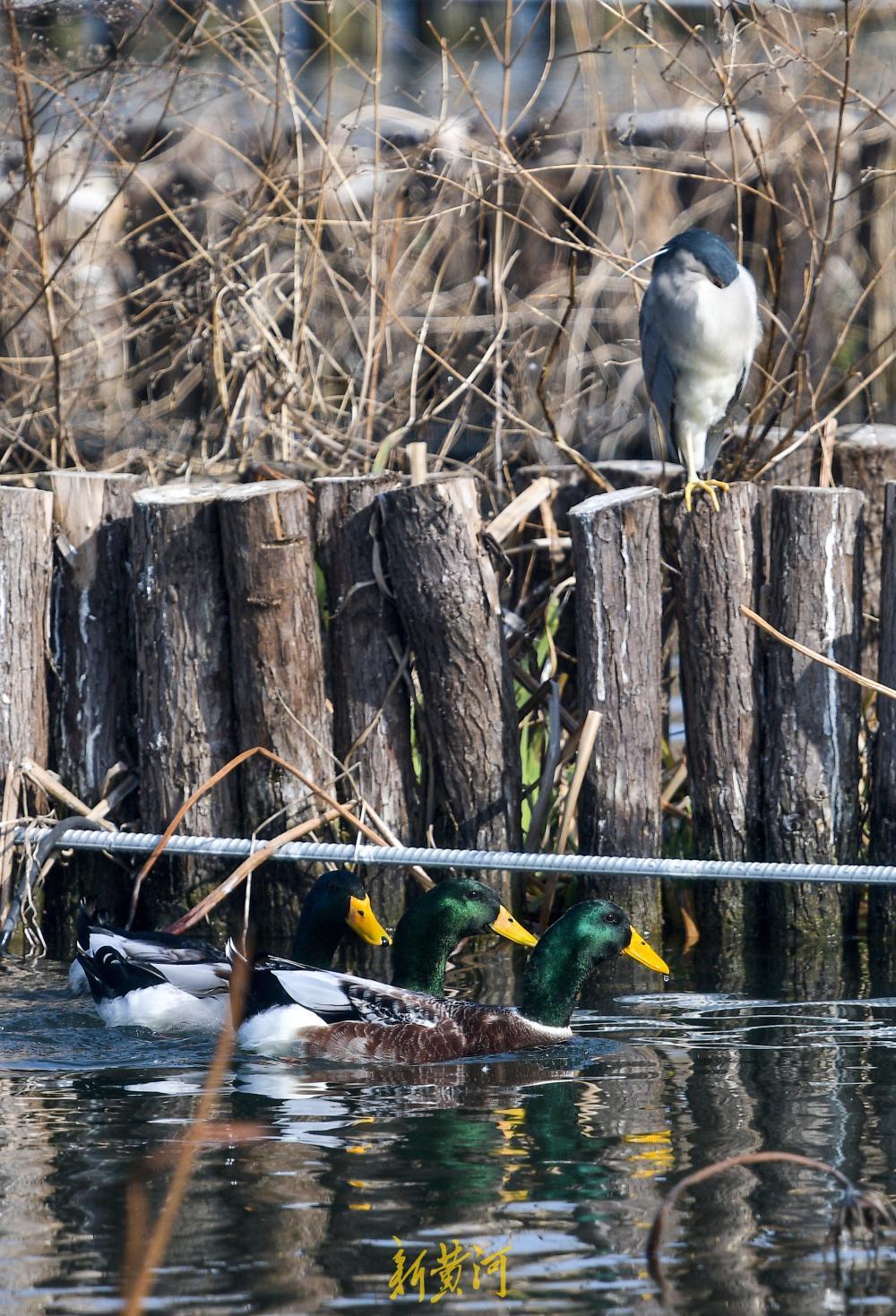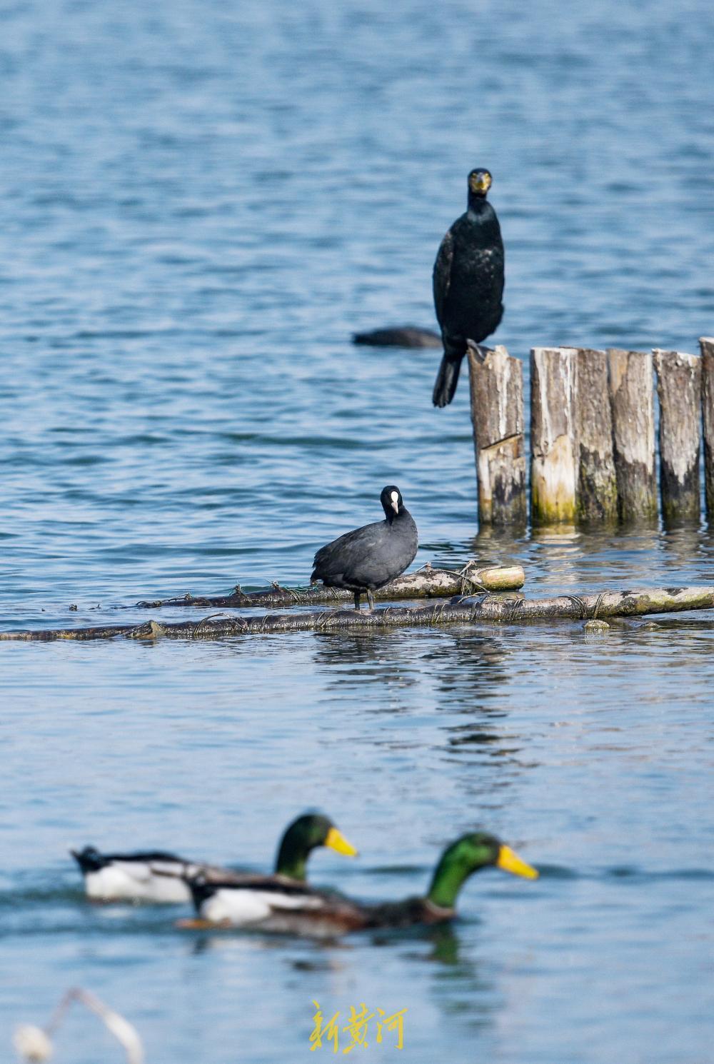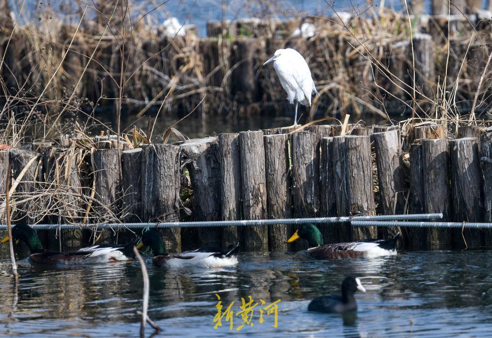 据了解,这片区域通过人为设置的木桩与自然生长的芦苇,有效阻隔了外部干扰,形成了良好的生态屏障。随着近日天气转暖,岛上栖息的鸟类数量明显增多。目前,岛上已观察到白鹭、苍鹭、白骨顶鸡、鹈、鸬鹚等十余种鸟类。它们或在湖中悠然游弋、觅食,或立于木桩上悠闲梳理羽毛、享受阳光,为大明湖增添了无限灵动与活力。