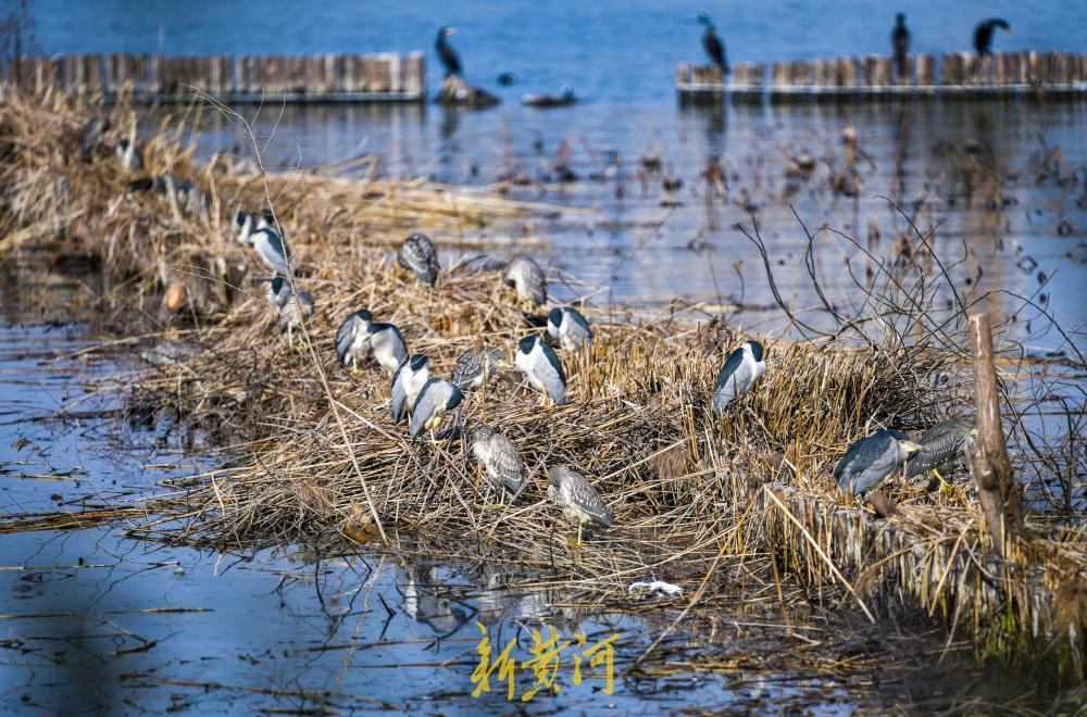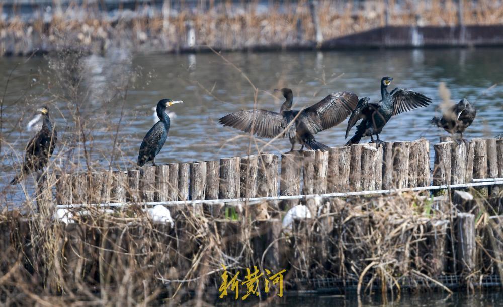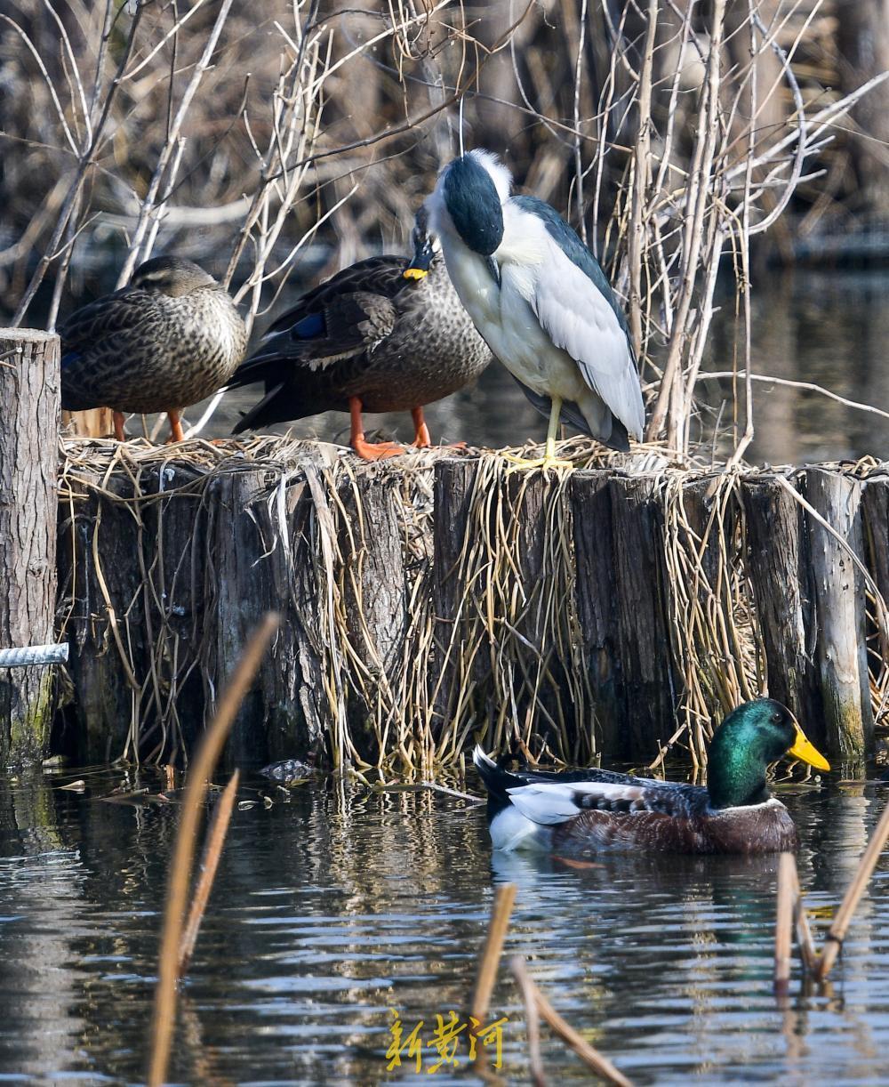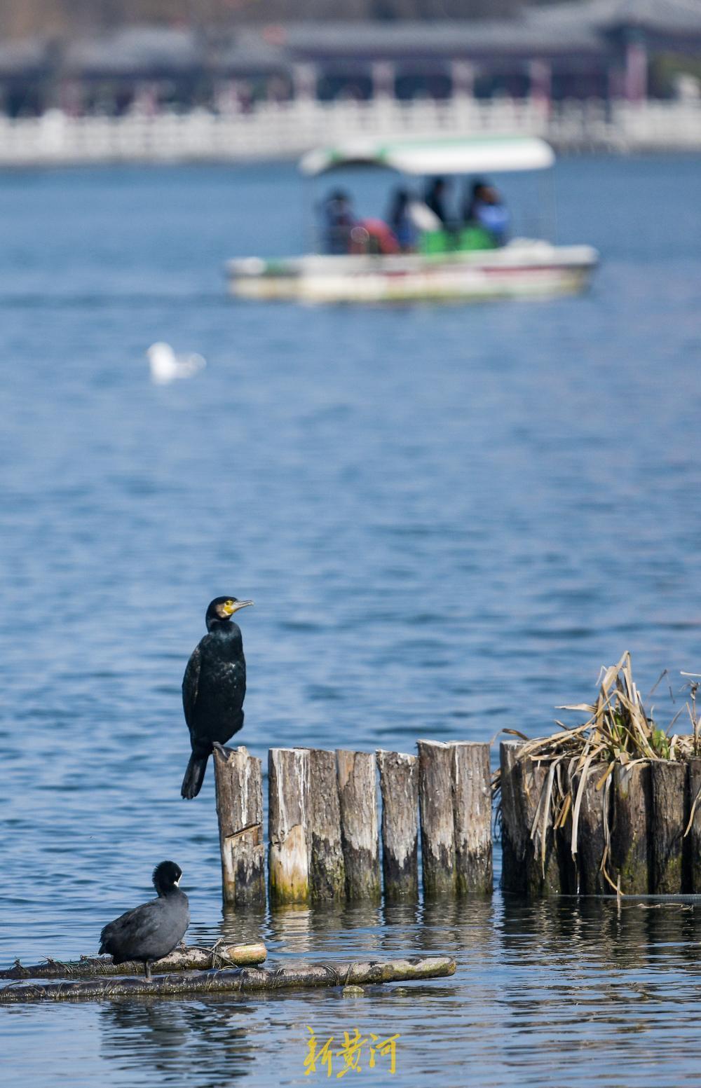 据了解,这片区域通过人为设置的木桩与自然生长的芦苇,有效阻隔了外部干扰,形成了良好的生态屏障。随着近日天气转暖,岛上栖息的鸟类数量明显增多。目前,岛上已观察到白鹭、苍鹭、白骨顶鸡、鹈、鸬鹚等十余种鸟类。它们或在湖中悠然游弋、觅食,或立于木桩上悠闲梳理羽毛、享受阳光,为大明湖增添了无限灵动与活力。