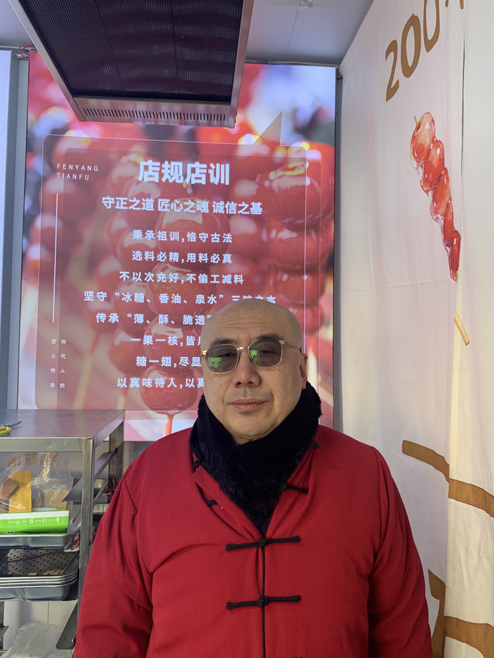 张正伦说,济南方言称山楂为“酸楂”,“酸楂”串成串儿蘸上糖浆,往板子(以前为青石板)上一“甩”,甩出晶莹的“糖翅儿”(又名糖风),这便是“酸蘸儿”。酸蘸儿中最具代表性的就是“梅花烙”。梅花烙精选材料,纯手工制作,工序复杂。从挑选山楂一直到蘸糖甩翅儿一共是十一道工序,分别是:挑选、清洗、去蒂、切片、去核、填馅、粘瓜子、粘芝麻、熬糖、挂糖、甩(摔)糖翅儿。北京叫糖葫芦儿,天津叫糖墩儿,胶东地区叫糖球。对于此次入选“济南文旅主理人”,张正伦表示,“非常荣幸,我会一直坚守老手艺,并继续传承下去。”