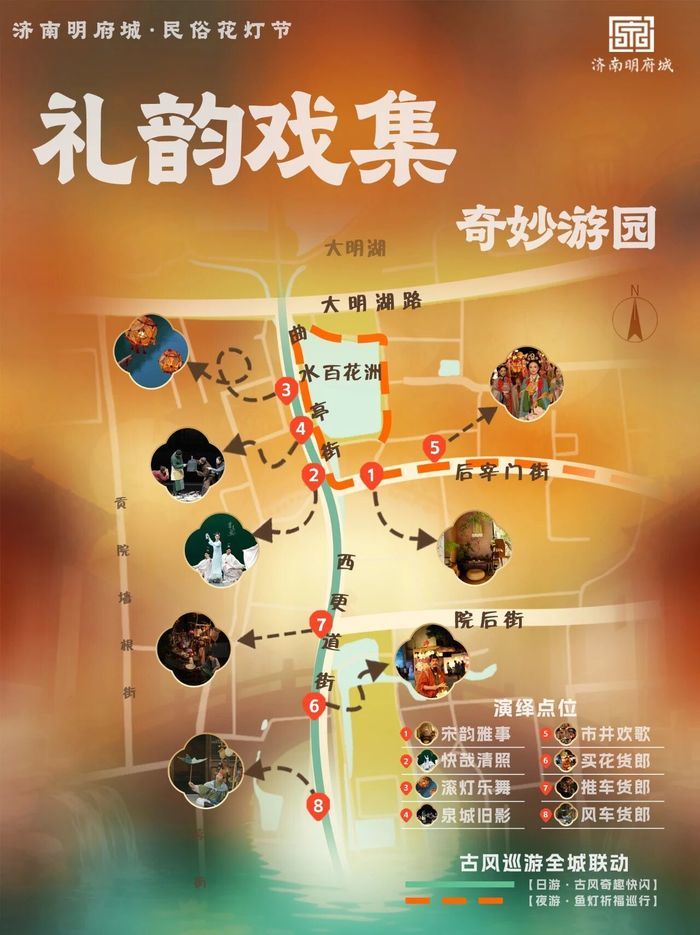 看古风快闪巡游,品新潮国风体验。2月8日至3月3日,明府城后宰门街、曲水亭街、西更道街、泮壁街开启奇妙游园活动,日游内容为古风奇趣快闪,夜游为鱼灯祈福巡行,打造一场跨越时空的文化盛事。