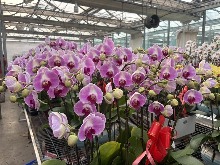 在销售渠道上,麒麟花卉兼顾线上线下,精准对接消费需求,线下以济南本地零售为主,覆盖各大花卉市场;线上依托社区团购等渠道,拓宽销售范围,实现“育苗到家中”的一站式服务,让市民足不出户就能买到优质蝴蝶兰。“每年年宵花销售都是我们的重点,今年蝴蝶兰销量比往年略有提升,尤其是‘彩月’‘QL粉玲珑’这两个品种,十分抢手。”张冀华表示,麒麟花卉不仅专注于蝴蝶兰的培育和销售,平时更注重品种研发和品牌推广,不断提升蝴蝶兰的市场认知度和知名度。