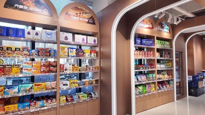 “齐鲁号·全球购”济南上新街店位于上新街北首,以“进口商品便利购+奶茶烘焙”双业态融合体验为主题,通过嵌入进口消费场景,进一步满足市民和游客高品质消费需求,助力济南市建设国际消费中心城市。