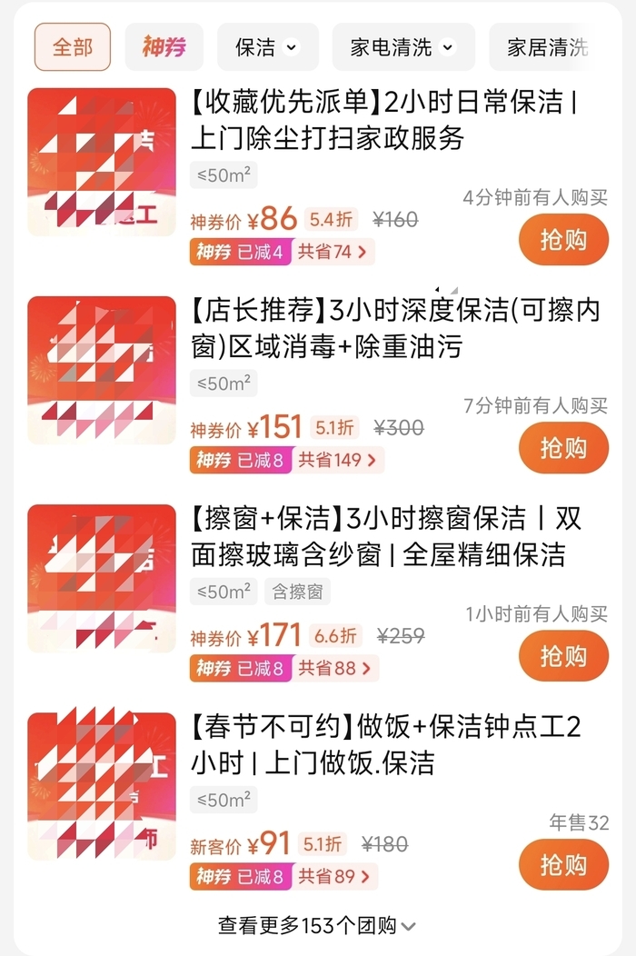 “我认为细分服务挺好的,我想让服务人员专门清理一下冰箱、空调,认为他们更加专业一点,可以更好地找到自己需要的服务。”市民陈女士讲道。但值得注意的是,市民下单后需要注意团购详情的注意事项,许多团购会在注意事项注明除外范围、超时费用以及因为部分时段需要加收服务费,记者随机选取一份团购,该团购2月13日到可查询的2月26日,17:30后上门清洁需要加价30元的夜间服务费。