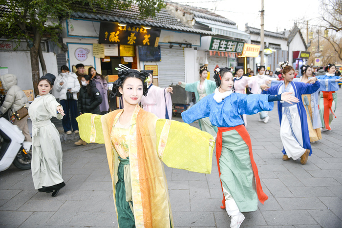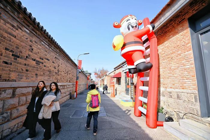 市中区的上新街,则将传统民俗与当代艺术完美融合,2月10日至2月23日,“冬日浪漫艺术季”正式启幕,主题为“福满上新·马年贺岁”,围绕“可逛、可赏、可玩、可体验”的思路,打造充满温情与创意的艺术文化街区。这里既有新春贺岁市集、舞龙舞狮、汉服巡游等经典民俗展演,也有戏剧专场、主题展览、马年元素互动打卡等年轻化体验。2月16日至2月23日,巨型鳌鱼空降街区,寄托着马年“独占鳌头”的美好期许;上新街110-5号院的“‘墨意正浓’财神作品展”,以当代艺术语言重新诠释传统吉祥符号,让传统文化焕发新活力。此外,“冬日浪漫飘雪”场景、大年初五财神送福等互动环节,让老街充满年味与乐趣。