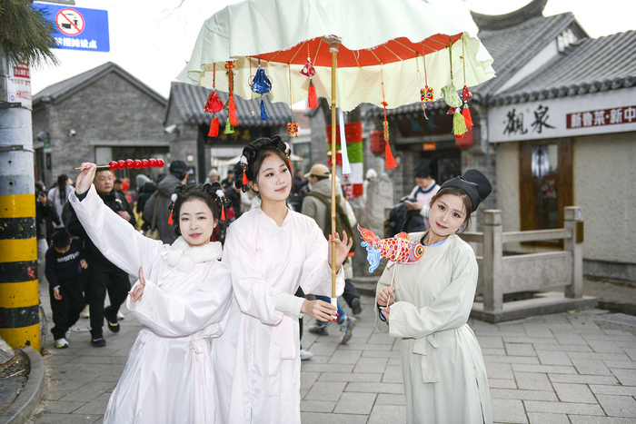 历下区的文化体验同样精彩纷呈,除了艺术展览与儿童剧,趵突泉漫心府推出泉水茶道、手工香篆等沉浸式项目,珍珠泉宾馆上线特色年夜饭套餐,让你在品味美食的同时,感受东方美学的雅致;市中区的上新街,除了民俗与艺术活动,还设有乐器演出、戏剧专场,让你在逛街区、赏美景的同时,聆听美妙乐章,感受文艺年味。
