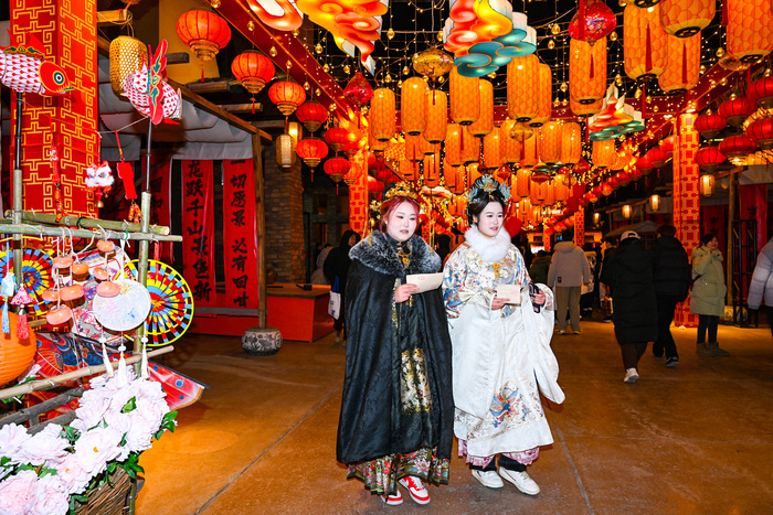 天桥区的五龙潭公园,则将灯展与民俗祈福相结合。2月10日至3月3日,“琼庭聚福 桥纳吉祥”丙午年秦琼祈福文化旅游活动在此举办,非遗文创市集、戏曲专场、曲艺专场轮番上演,夜幕降临,园区内灯火璀璨,与古建筑相映成趣,逛灯会、赏曲艺,在欢声笑语中感受传统年俗的魅力。