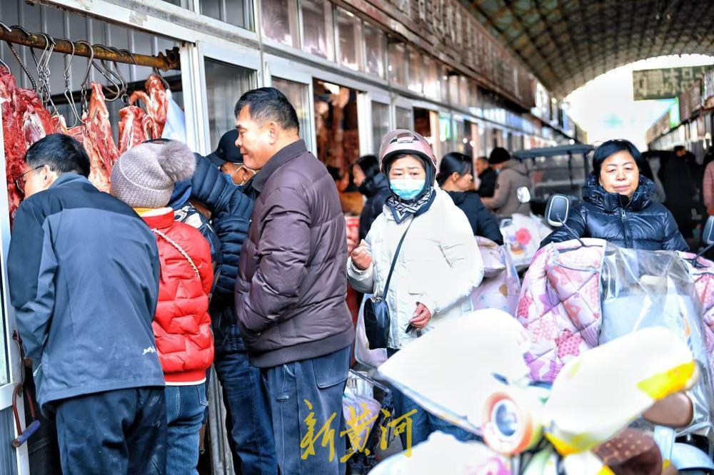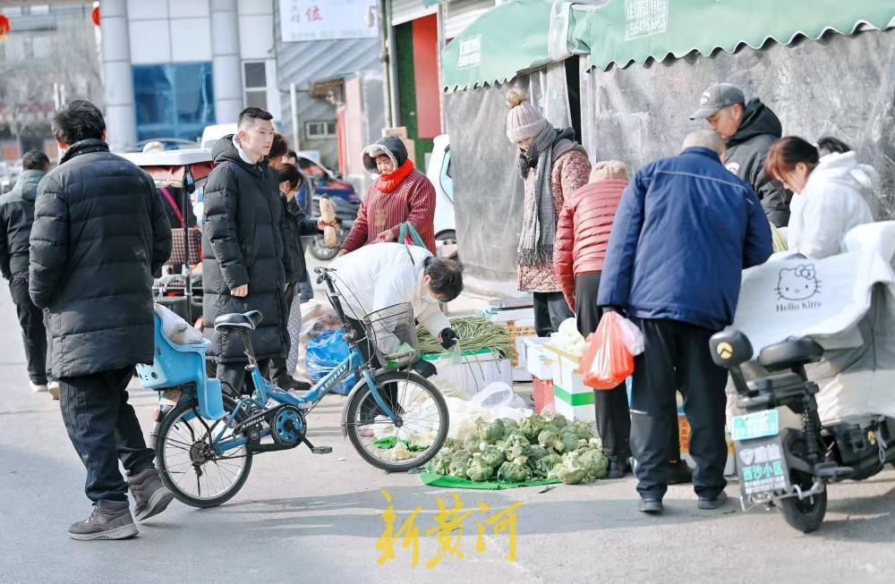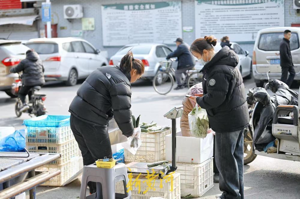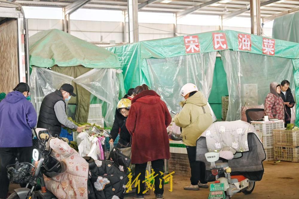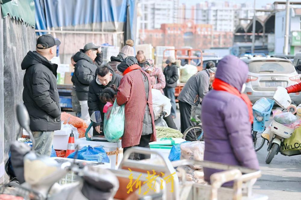 2月15日,农历腊月二十八,除夕的脚步越来越近,匡山农产品交易市场迎来采购高峰,蔬菜、肉食摊位前热闹非凡,运输车辆与采购市民穿梭不停,各类蔬菜摆放整齐,交易活跃。