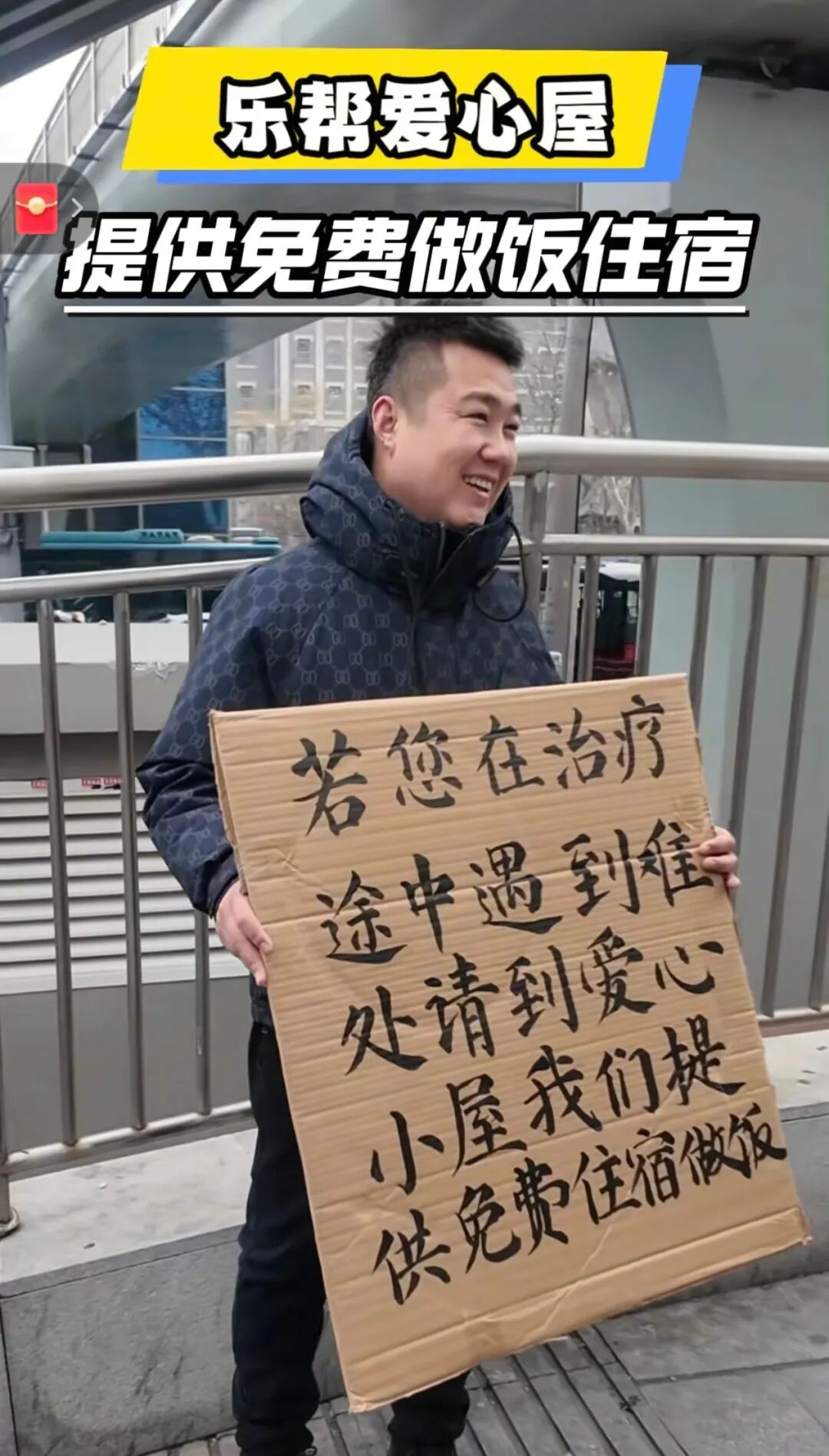 这份心念,在2022年变成了现实。郑刚将自家的老房子改造成“爱心小屋”,这便是乐帮爱心共享厨房的前身。“一开始条件很简单,只有12张免费床位,4个灶台,没什么多余的设施,初衷就是能让陪护家属们有地方住、有地方做饭,能吃上口热乎饭,少受点罪。”郑刚回忆道,为了让更多有需要的人知道这个地方,他从2022年开始运营爱心小屋的社交账号,视频里,他常常举着那块写着“若您在治疗中遇到难处请到爱心小屋,我们提供免费住宿做饭”的纸牌,没有刻意的宣传,只是真诚地向困境中的家庭伸出援手。