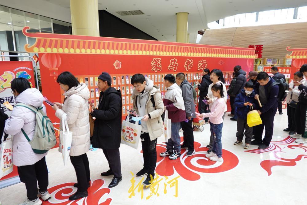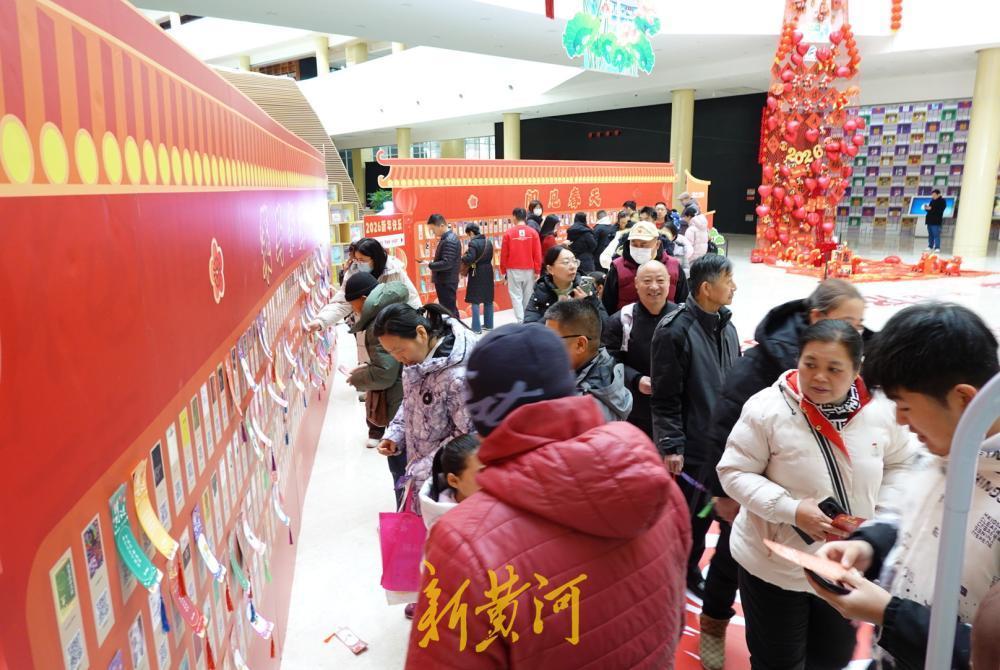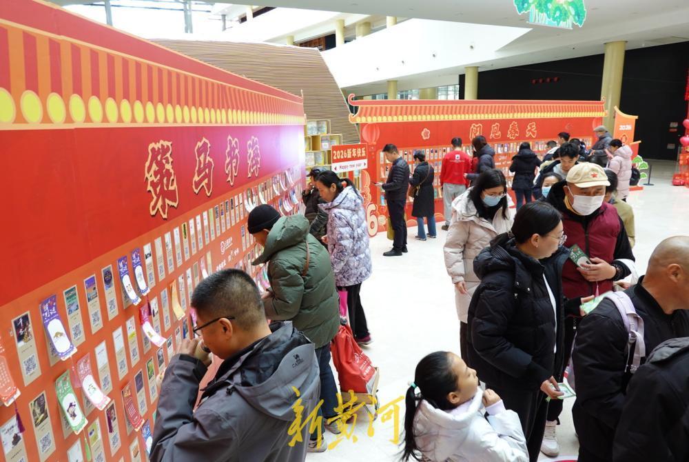 活动现场,数百条五彩斑斓的谜语悬挂如帘,内容涵盖字谜、成语、地名以及传统文化知识,既具娱乐性又富知识性。这面壮观的“谜语墙”迅速吸引了入馆读者的目光,不少读者在猜出谜底后,前往服务台兑换图书馆准备的新春福利,在收获知识的同时也收获了节日的惊喜。