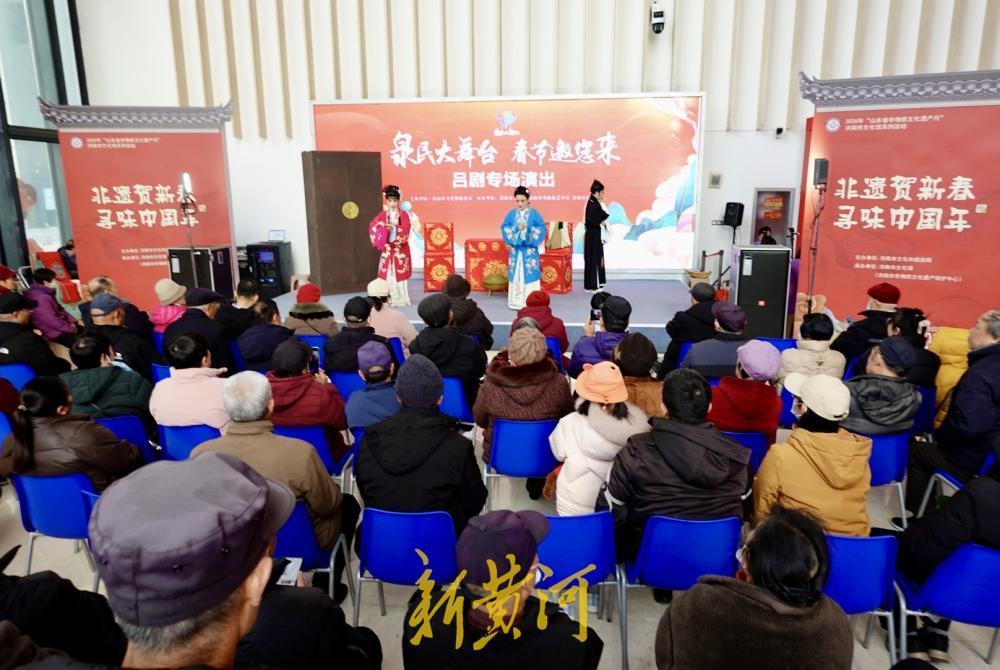 2月17日,农历正月初一,济南市文化馆内丝弦悠扬、掌声阵阵,一场别开生面的“泉民大舞台 春节邀您来”春节吕剧专场演出在这里精彩上演。本次活动由济南市戏曲曲艺中心与济南市吕剧院联合举办,精心挑选的经典传统吕剧《借年》与《喝面叶》,为泉城市民献上了一份饱含深情与温度的文化年货。
