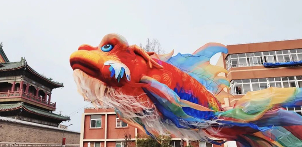 巨型鳌鱼艺术装置昂首而立、缓缓飘动,成为游客争相打卡的焦点。