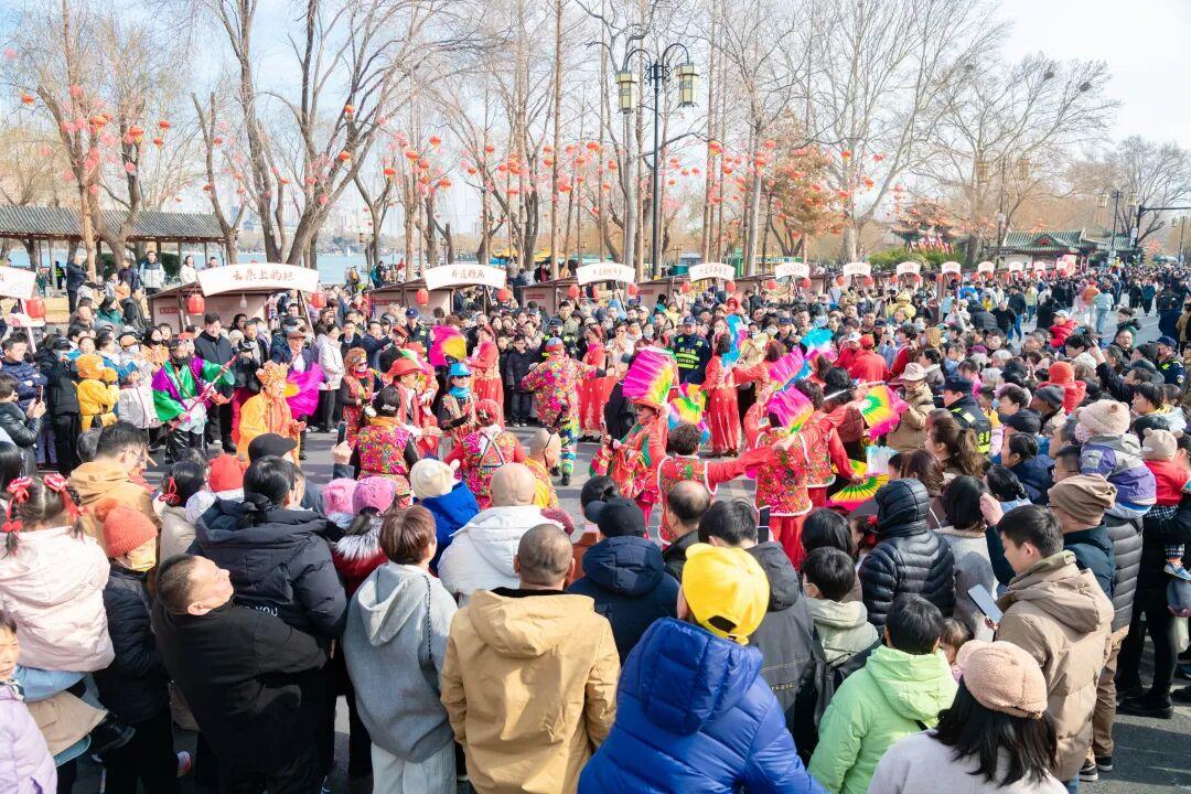 活动现场,精彩绝伦的民俗演艺与巡游互动轮番上演,将明湖市集化作流动的新春舞台。高跷、锣鼓秧歌、舞龙舞狮等经典民俗表演精彩纷呈,让市民游客沉浸式体验浓郁年俗风情;马灯舞、西乐合奏、锦鲤送福等特色互动演艺更是让现场游客眼前一亮。连续六天好戏连台,为市民游客献上丰盛的新春文化大餐。