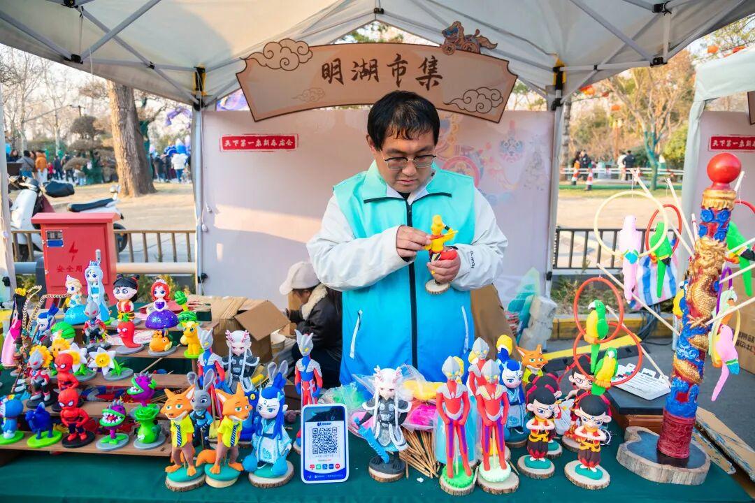 本届明湖市集以“庙趣泉韵 马力全开”为主题,在大明湖路精心布设了60个特色展位,集非遗手作、创意潮品、品牌好物三大核心业态,让传统民俗与潮流创意碰撞交融,打造出活力满满的春节消费新场景,充分展现济南“城湖相依,古今交融”的城市魅力。