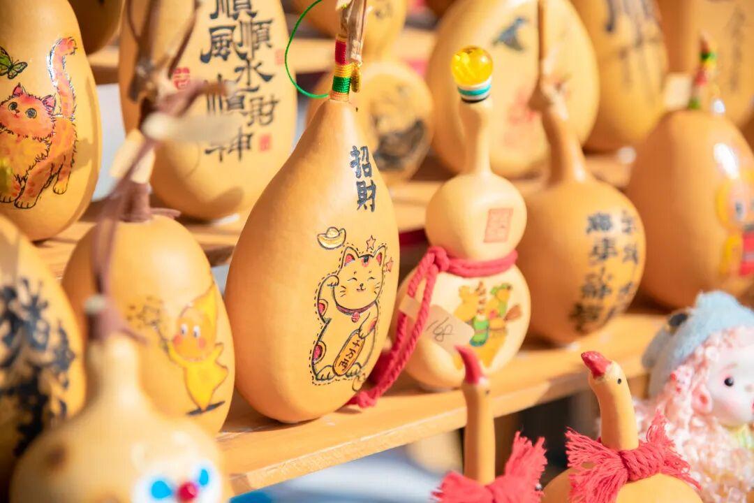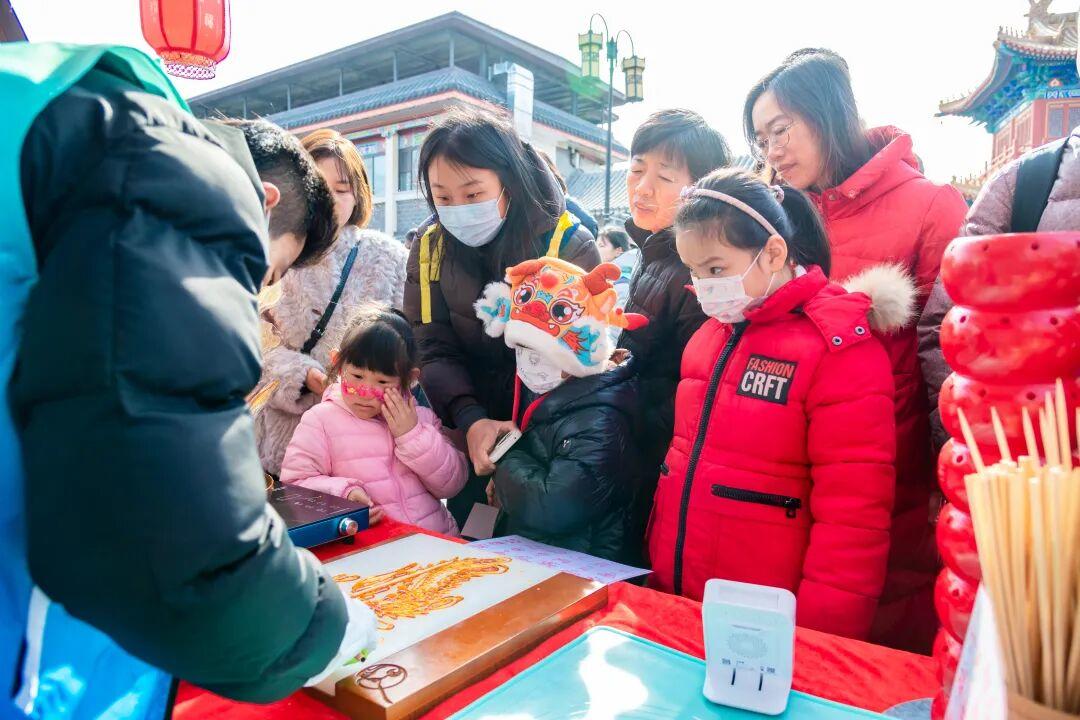 非遗手作展区汇聚泉城非遗精品,古法吹糖人、木质皮影、非遗宋锦、葫芦烙刻、草本香囊、面塑、翻花等非遗代表性项目集中亮相,手艺人现场展示技艺,游客近距离触摸传统工艺的匠心巧思,感受非遗的独特魅力。