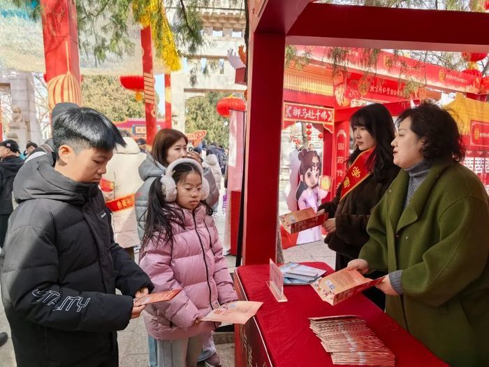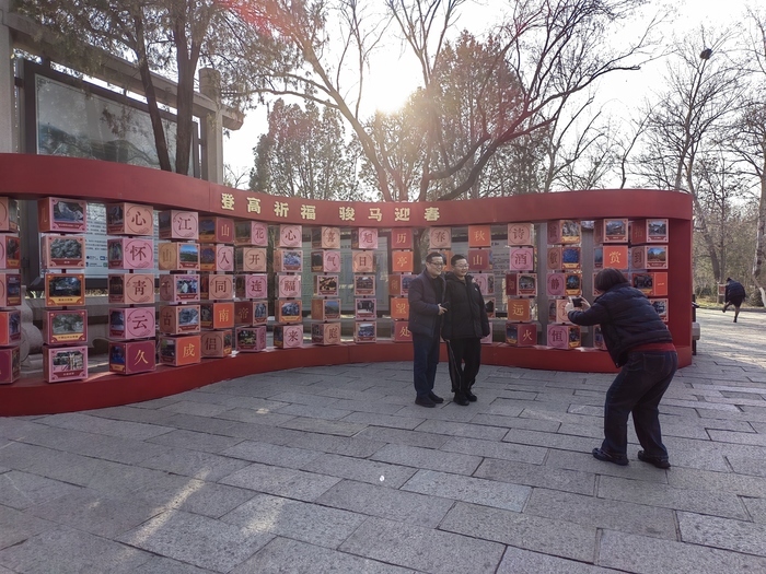 游园会的精彩活动也仍在延续。游客可在北门领取专属打卡手册,参与登山集章寻宝活动,集满印章即可兑换限量新春礼品,让登高祈福之旅多了一份探索的乐趣。北门内的转运墙前,依旧有不少市民驻足,亲手转动字块,组合专属马年寄语,许下对新一年的美好期许。