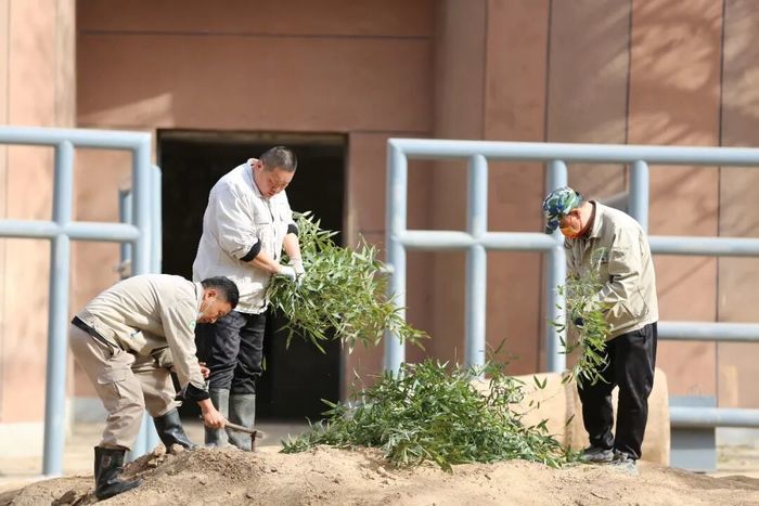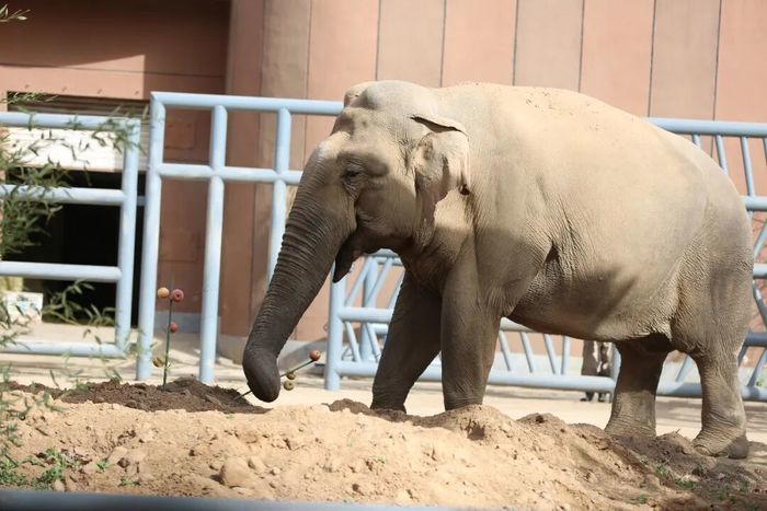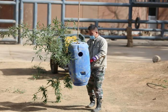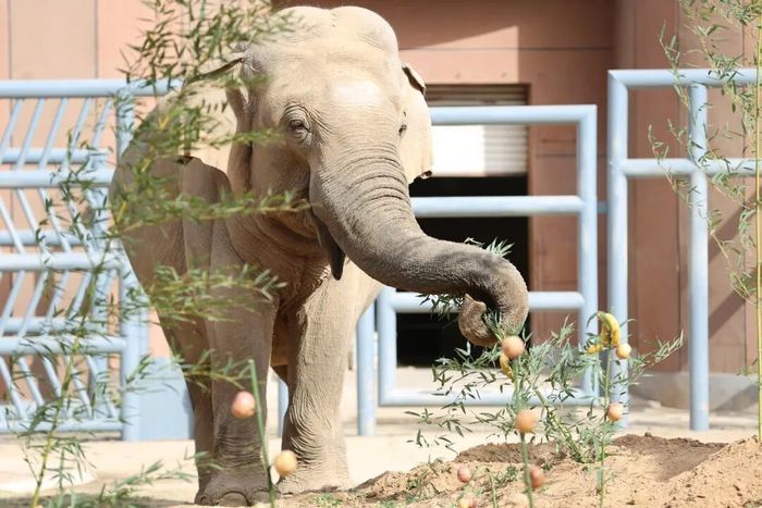 保育员化身专属“美食策划师”,在土堆里插新鲜竹子、定制水果竹串,还将营养果蔬、可口草料巧妙藏进轮胎和吊桶中,把简单投喂变成趣味探索挑战,为亚洲象搭建起充满惊喜的新春寻宝乐园。充分模拟野外觅食场景,激发探索天性,让采食更有趣、运动更充分。