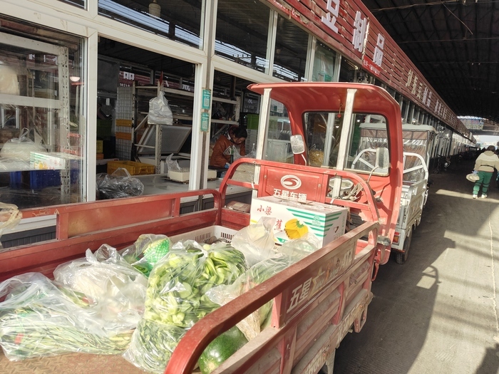 不远处,骑着电动三轮车的王女士正小心翼翼地往车上码放刚批发的芹菜和菠菜,她在历城区开了一家社区菜店,“今天初八,好多老顾客都发消息、打电话问我啥时候开门,想着大家节后都想吃点新鲜青菜,我一早就来市场进货,赶紧拉回去就能开张,不耽误老顾客买菜。”王女士笑着介绍道,“我这一车菜估计一天就能卖完,明天一早再来补货。”