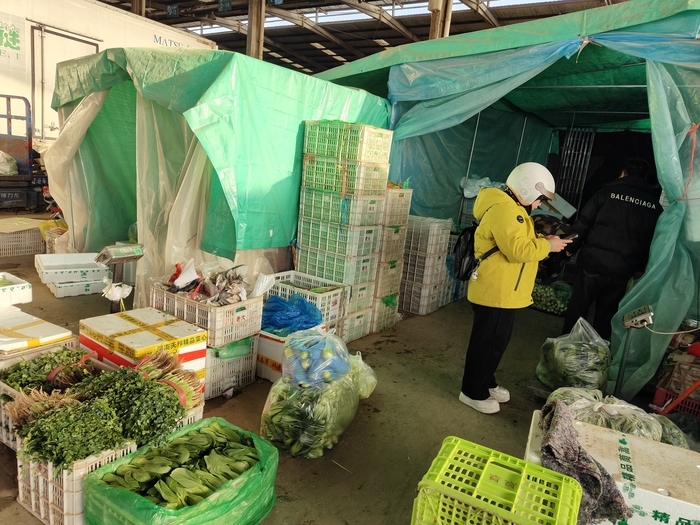 除了采购商,不少市民也前来批量采购蔬菜,尤其是家里人口多的市民,更是一次性买够一周的蔬菜。“家里人多,节后做饭需要的蔬菜多。”市民张先生正准备骑着电动车回家,车筐里装着白菜、萝卜,后座绑着菠菜、香菜和油菜。