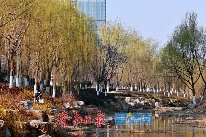 漫步腊山河滨水绿道,新柳如烟、柔条拂水,嫩黄新绿缀满枝头,春风过处,柳丝轻扫水面,漾起层层涟漪。沿线迎春花次第绽放,金黄点点与柳色相映,河道水清岸绿、鸟影翩跹,步道整洁通畅,景观亭台错落,构成一幅清新灵动的泉城春日生态长卷。
