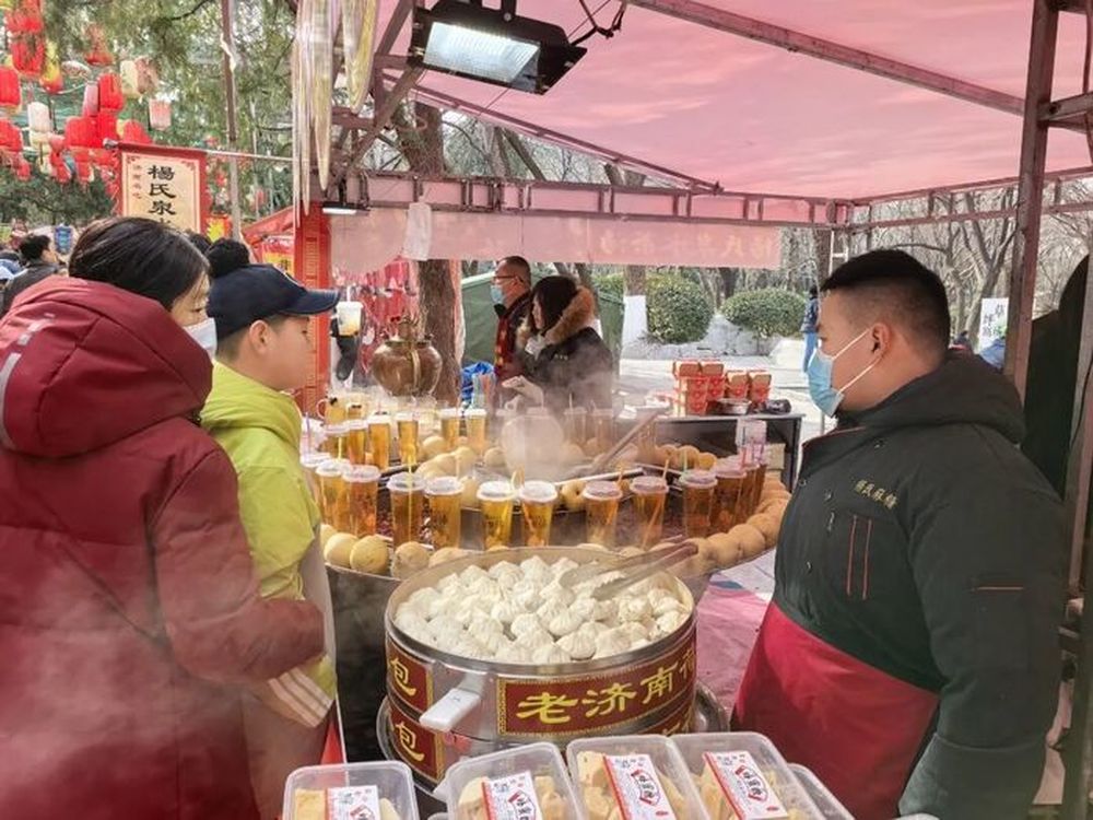 元宵当天,新年大集持续开放,北门至卧佛的主山路百余摊位组成的年味长廊里,葫芦烙画、黄河泥塑、糖画等非遗手作琳琅满目,黄家烤肉、煎饼馓子、泉水雪梨汤等地道美食香气扑鼻。市民游客可一边逛集淘宝,一边品尝特色美味,将浓缩的泉城年味与新春祝福带回家。