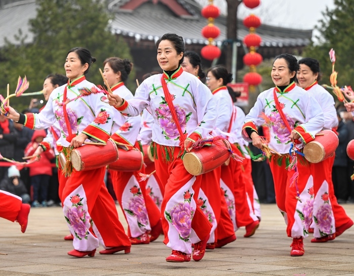 本次展演汇聚济南各区县10支优秀传统舞蹈队伍、300余名演职人员同台献艺,既涵盖商河鼓子秧歌、花鞭鼓舞、济阳鼓子秧歌等国家级非遗代表性项目,也荟萃兴隆舞龙、西张绣球灯、梆鼓秧歌、猫蝶富贵、加古通、董家伞棍鼓舞、老石沟锣鼓等省市级非遗代表性项目。演员们盛装亮相、精神饱满,将独具泉城特色的传统舞蹈演绎得淋漓尽致,让广大市民游客在欢腾热烈的节日氛围中,沉浸式体验一年一度的新型民俗风采。