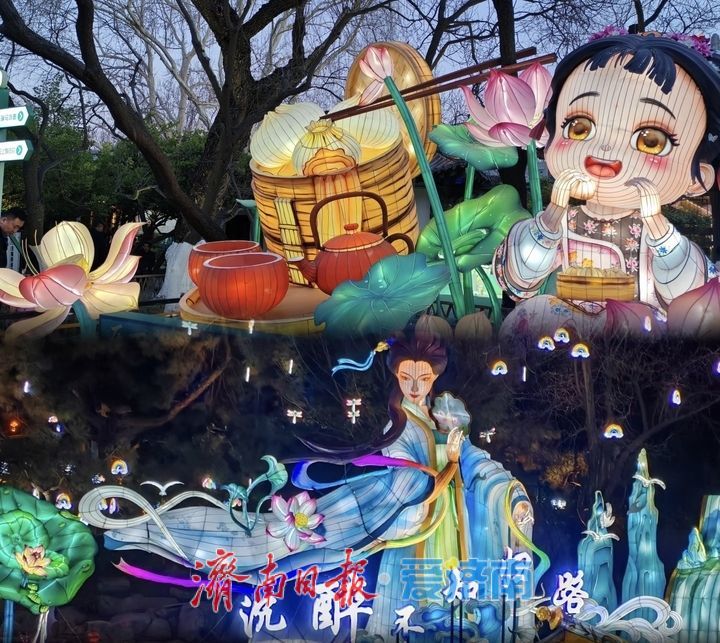 趵突泉公园内,三股水光影灯组与李清照国风灯组相映成趣,非遗糖画、面塑等现场体验,让游客在赏灯之余也能品尝手作的甜蜜。大明湖则延续“白天庙会、夜晚花灯”的传统,湖面动态灯组与沿岸谜灯长廊,衬得“一城山色半城湖”的意境愈发诗意。