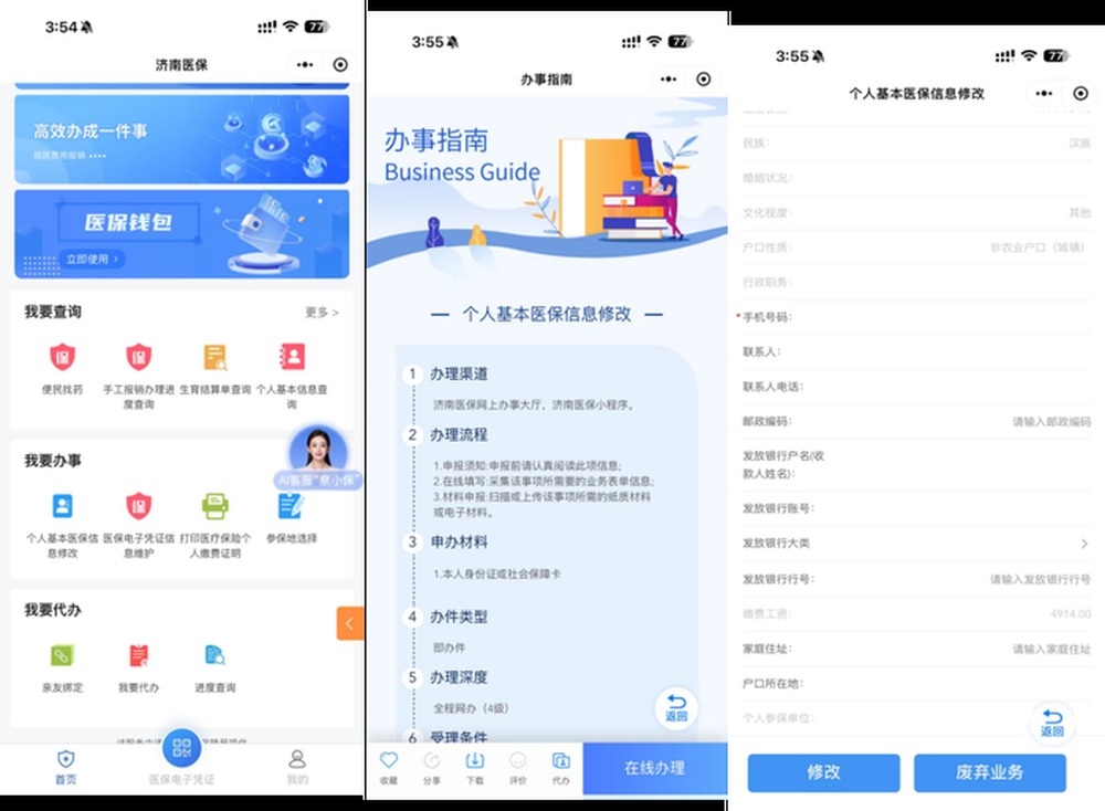 AI智能问答+精准查询+在线办理,生育政策、报销流程、津贴申领一键知晓、一站办结,不用跑腿、不用久等,随身医保管家贴心相伴。