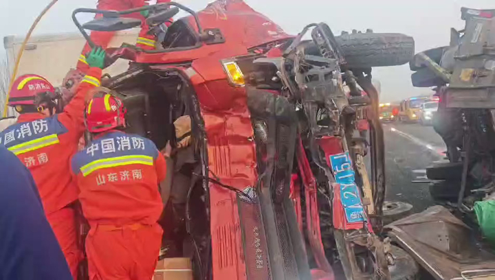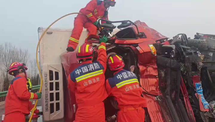 3月17日6时,济南市起步区京沪高速济南方向太平收费站南6公里处,两辆货车发生相撞,一名司机被困。接到警情,济南市消防救援支队银河路消防救援站消防救援人员立即赶赴现场救援。