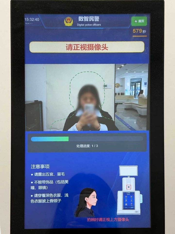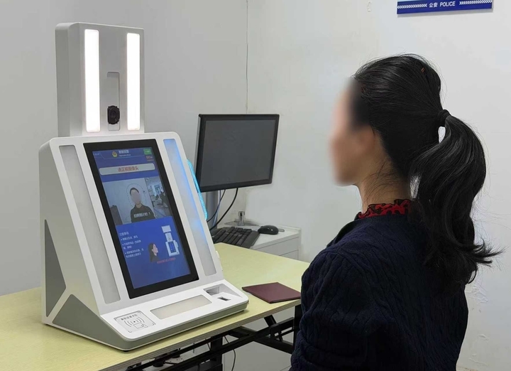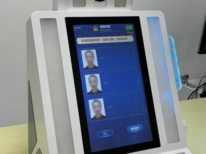 更值得一提的是,这台机器小巧灵活,自带背景智能处理功能,对拍照环境要求极低,无需专门搭建专业拍照背景,可以直接放置在业务大厅等公共区域。这一特点不仅降低了部署门槛,也为后续在更多派出所及警务站推广应用奠定了坚实基础。届时,每个派出所可根据业务量轻松配置多台终端,一名民警可同步统筹3至5台机器,实现人力与效能的双重提升。