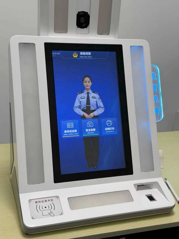 “数智民警”以“大模型+小模型”协同算法为支撑,高度集成拍照、灯光、指纹等相关设备。在技术实现上,引入视觉识别算法,实现背景智能处理与面部自动识别;在交互设计上,采用了“无感交互”理念,通过语音引导、动态画面提示与触控反馈相结合,让群众在操作过程中无需记忆复杂步骤,真正做到“即来即办、即办即走”。