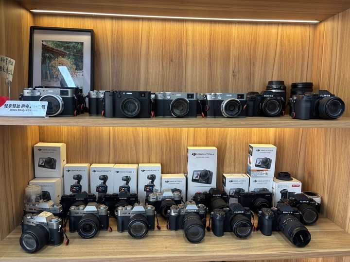 值得注意的是,当下的相机租赁需求已从传统的旅游记录,延伸到日常体验甚至专业工作,彻底打破了“逢节必租”的局限,呈现“有需求就租”的新态势。“以前大家只有假期旅游才会租相机,现在不一样了,踏青、演唱会、探店、生日会等场景,都有人来租设备,需求越来越细,我们的设备也得跟着不断更新。”安妮表示,门店不仅持续更新大疆、富士、佳能等热门机型,还配齐了租赁所需的各类配件,同时提供设备使用教学服务,满足不同租客的需求。