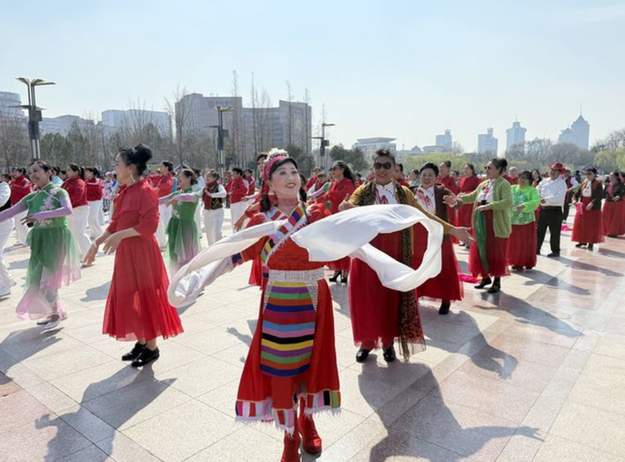 随后,广场舞《再唱山歌给党听》深情上演,演员们身着整齐服饰,舞步铿锵、歌声嘹亮。喜庆欢快的传统秧歌紧随其后,红绸飞舞、鼓点欢腾,浓郁的民俗风情感染全场,不少市民跟着节奏拍手互动。这是一场全部由“银龄演员”组成的文艺联欢,也是中老年人身心健康的“心灵驿站”。这些银龄演员们用他们的歌声与舞姿,不仅演绎了传统节日的喜庆,更奏响了老年人积极向上的生命乐章。
