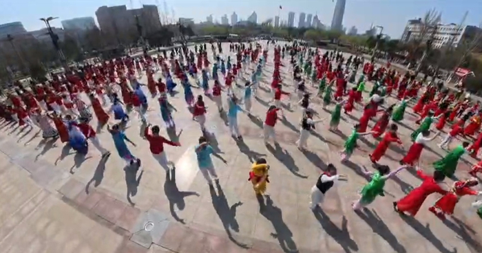 舞步绽放风采,掌声汇聚温情。活动现场,上百条气势恢宏的空竹龙进行展演,伴着锣鼓声彩龙翻飞、腾跃盘旋,传来阵阵清脆的空竹声响。一条条“巨龙”在广场上空灵动起舞,寓意龙腾盛世、福满泉城,吸引众多市民游客纷纷举起相机拍照,感受喜庆气氛。