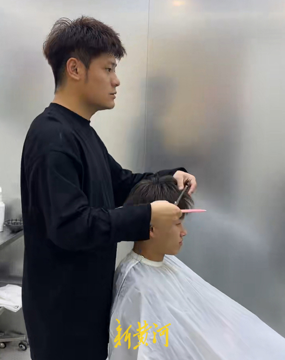 店铺主理人陈先生为顾客修剪头发