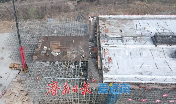 此次完成浇筑的主桥第一节段箱梁,是全线转体桥体系的核心连接构件,承担着衔接墩柱、主梁与主塔的关键作用,其施工质量与进度直接决定着项目整体推进成效。作为全线的控制性工程,涉铁段转体主桥跨度272米、重达4.3万吨,其跨度和转体重量均居省内同类型转体桥首位。据了解,腊山河西路北延工程南起德州路,北至济齐路以北,全长约1.67公里,规划为双向六车道城市主干路。项目建成后,将有效串联济南西站、国际医学中心、美里湖片区等西部核心功能区,有效分流齐鲁大道、二环西路的交通压力,进一步完善西部城区路网格局,为济南“西兴”战略实施及片区高质量发展提供强有力的交通支撑。(济南日报·爱济南记者:崔健)