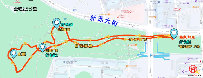 特别设计的2.5公里沉浸式登山线路,将生态保护理念融入攀登的每一步。从“都市客厅”出发,沿阳光廊桥漫步前行,途经台地花园(打卡点1)、山麓广场(打卡点2),直达山顶俯瞰泉城春景,最后经由另一侧山林绿道折返“都市客厅”(打卡点3/终点)。尽赏泉城春景的同时,沿路参与环保打卡挑战,还有机会获得限定纪念文创,把“一城山色”带回家!