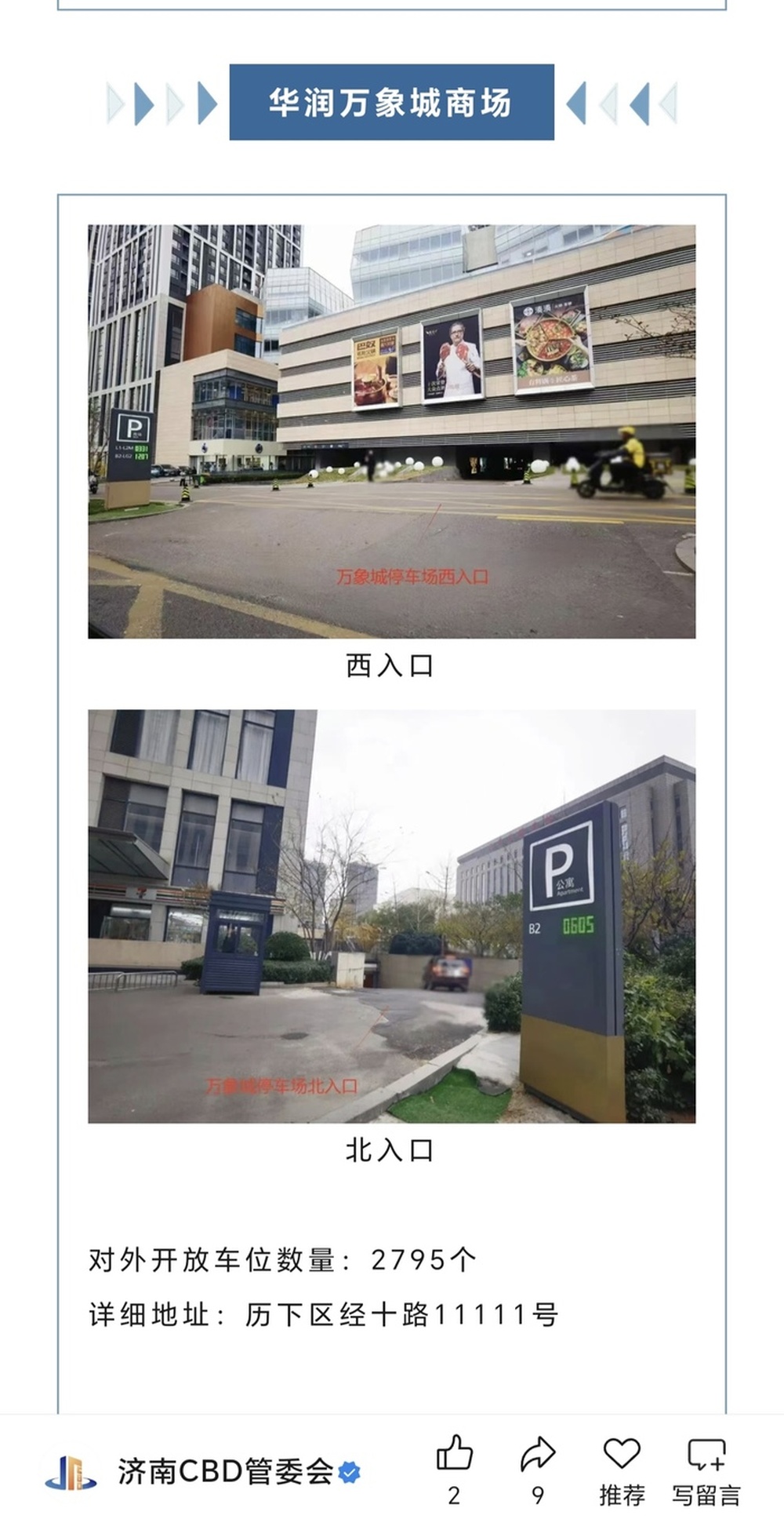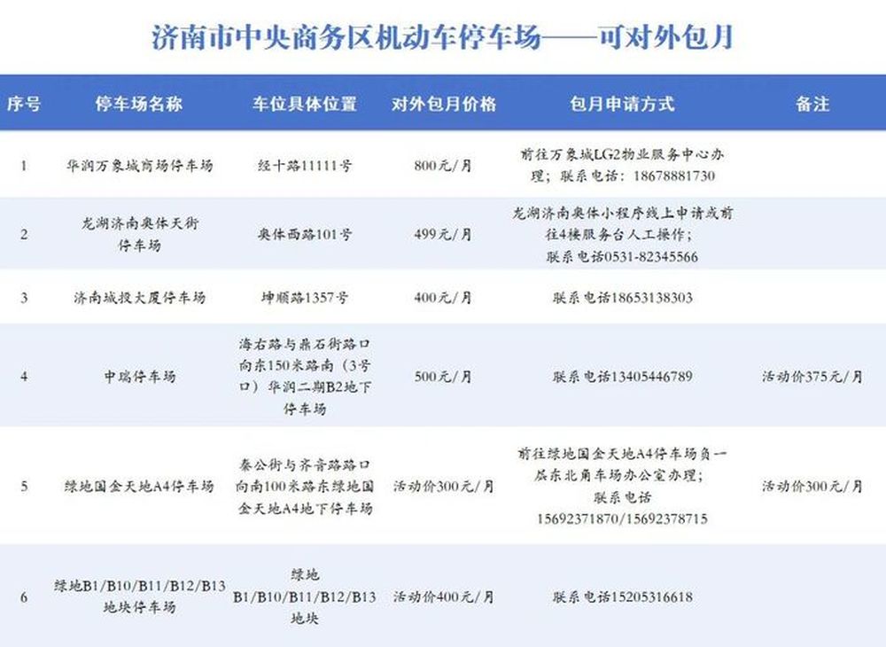 除了“对外开放”停车位,2025年9月,为缓解“停车难”问题,济南CBD管委会联合区城管局、区交通管理大队,在四次公布对外开放车位的基础上,通过深入调研,积极推动片区停车场管理单位提供对外月租停车资源。华润万象城商场停车场、龙湖济南奥体天街停车场、济南城投大厦停车场等六家企业、地块提供包月停车服务,包月价在300元到800元之间,以满足部分通勤车主的需求。当年11月,再添一处瑞泰大厦。