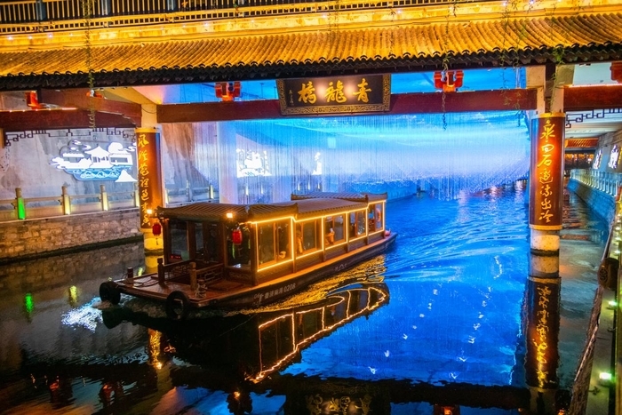 近日,济南天下第一泉风景区护城河青龙桥灯光改造工程全面完工,“蓝韵龙桥”景观惊艳亮相。此次对护城河进行全面的灯光氛围改造,让这条全国独有的泉水护城河焕发新光彩。作为改造的一大亮点,“蓝韵星河”景观以蓝色系的星河灯光装置为核心,与传统建筑肌理深度融合,将“桥载星河,梦渡古意”的浪漫想象落地成型,打造出可触可感的沉浸式光影空间,让古桥与星河相映,传统与现代相融。